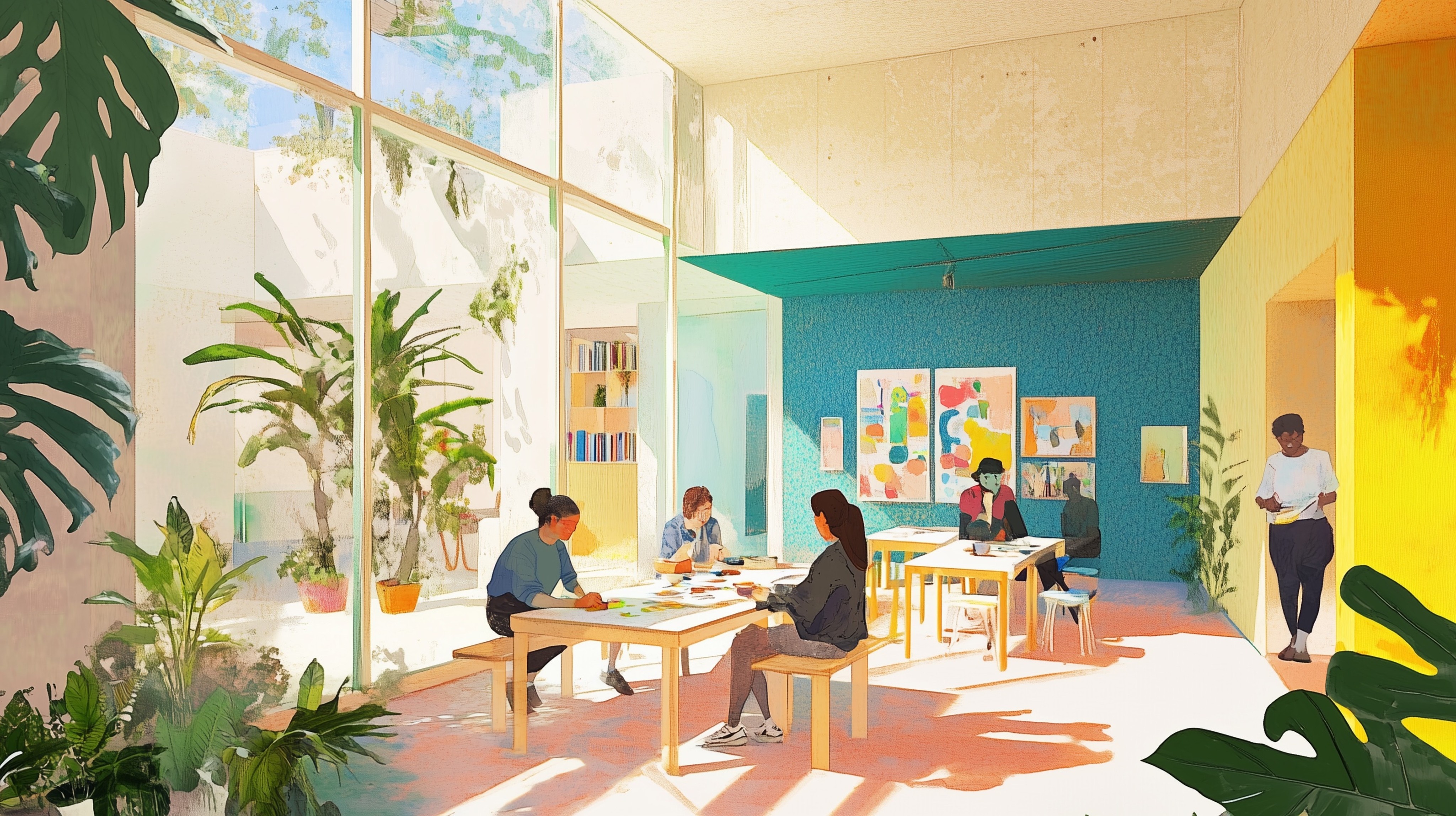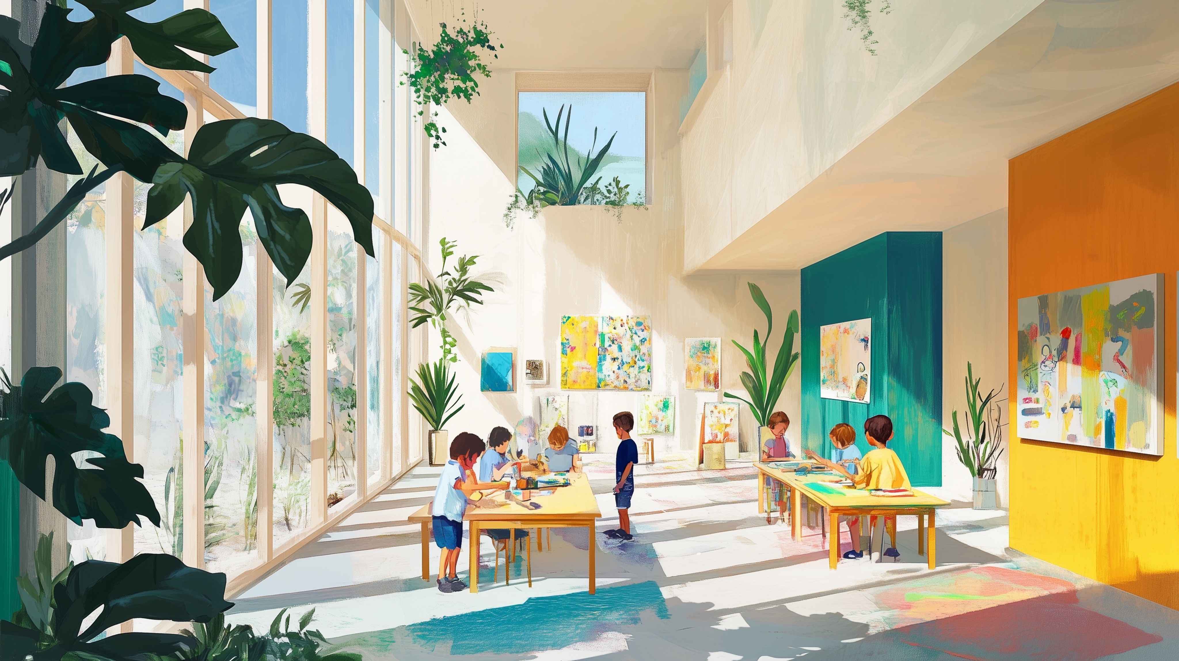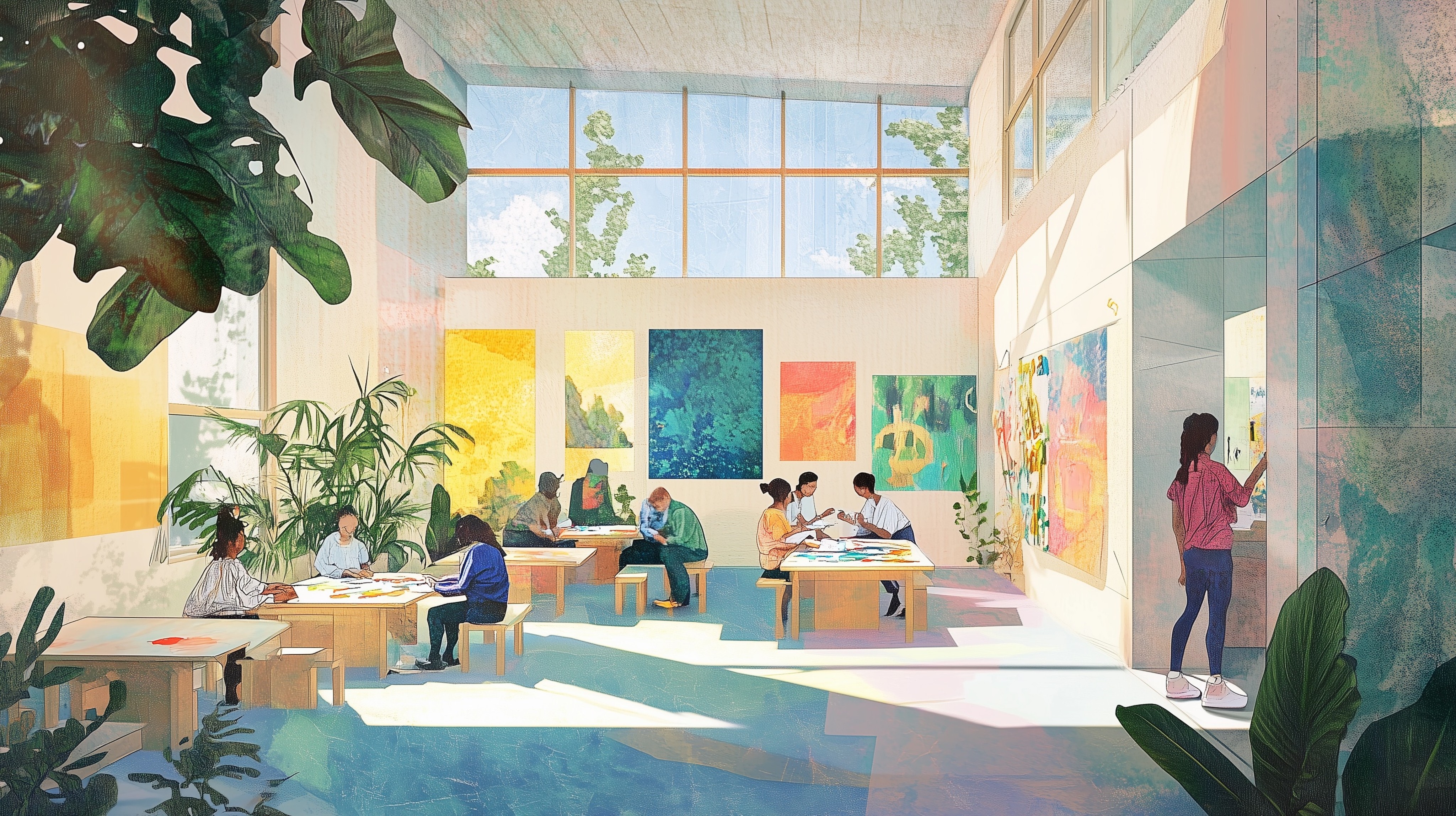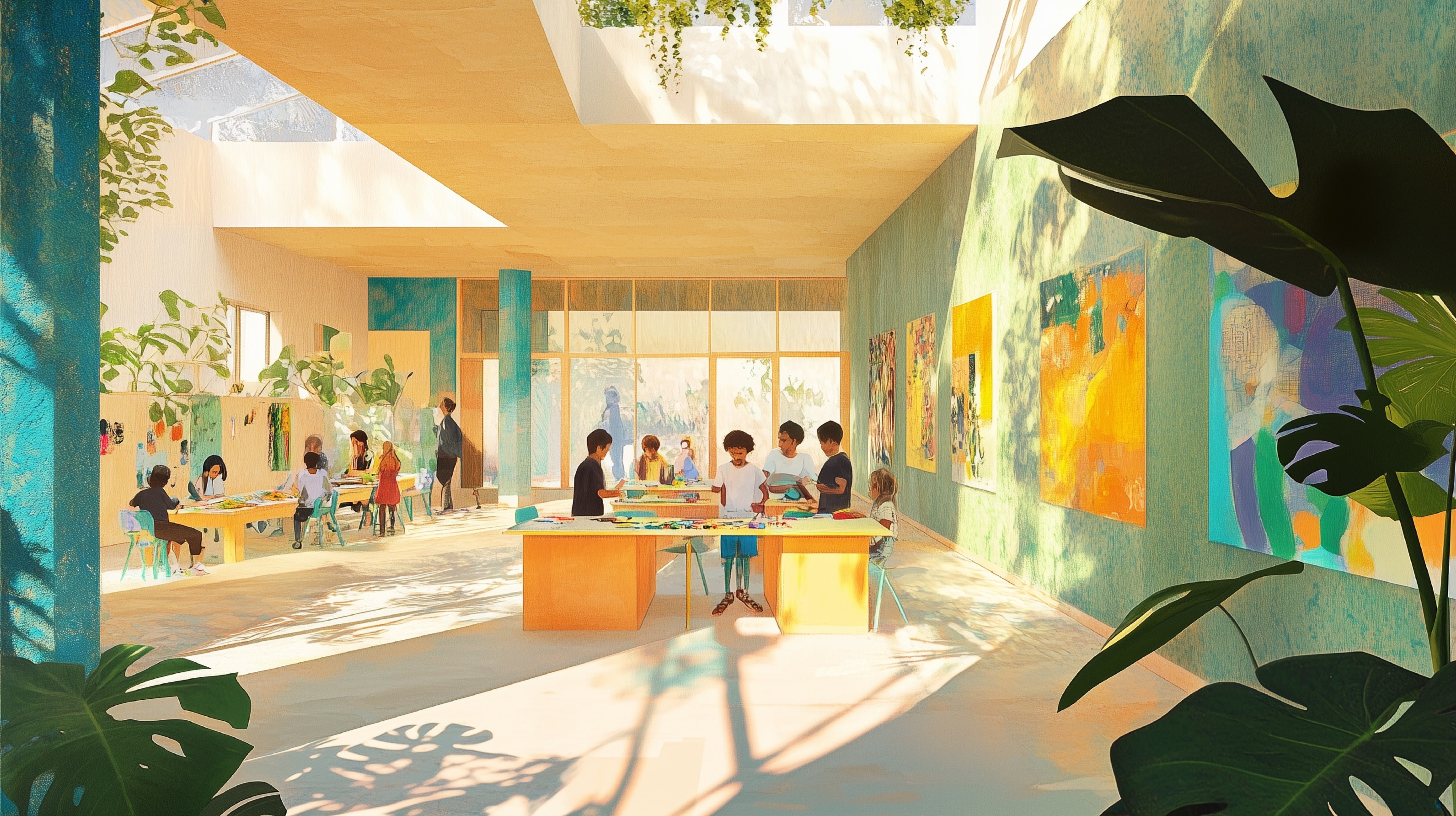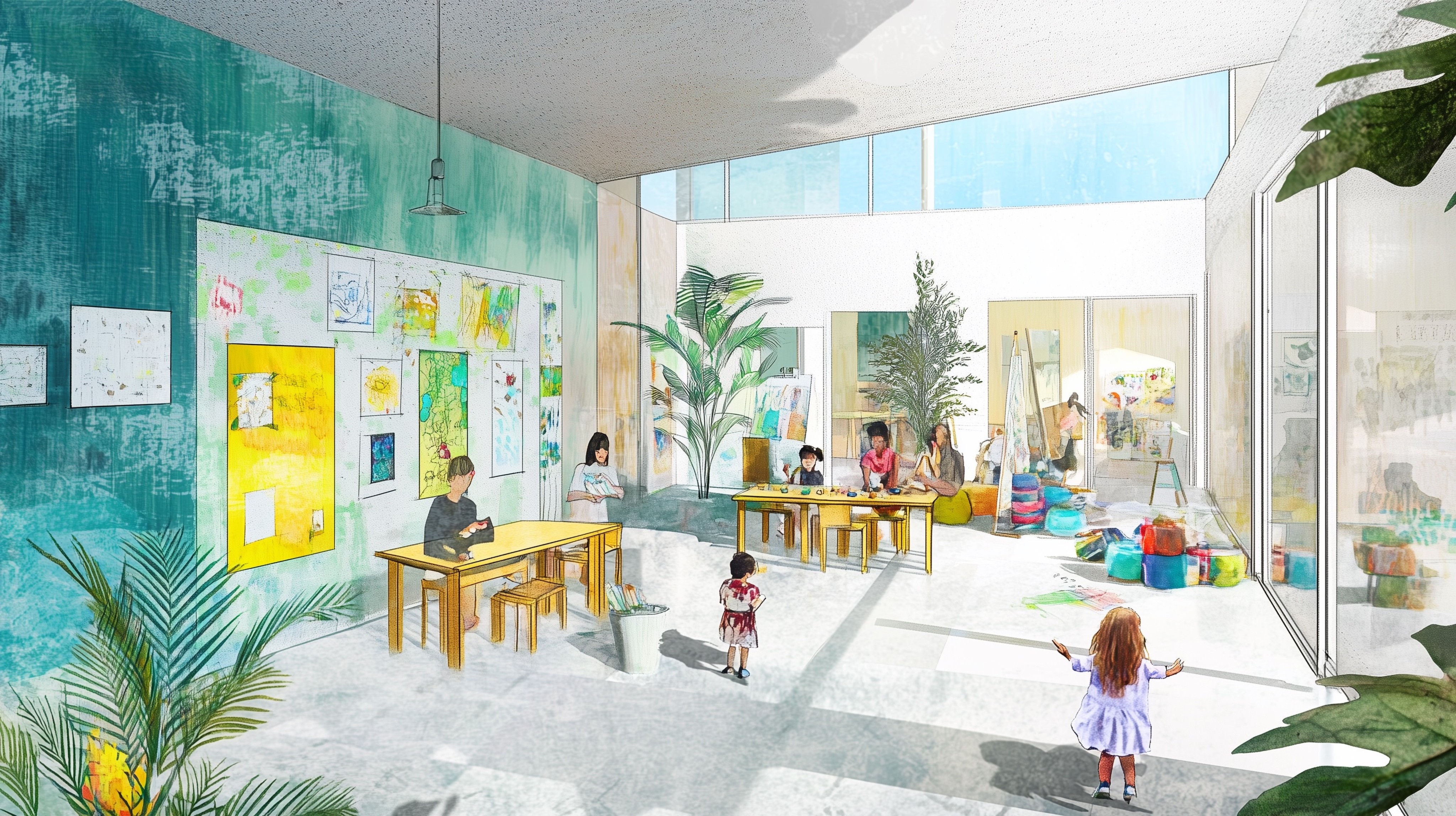 The Art Room will consist of many versatile rooms, including rooms suited for children, teenagers, adults and the elderly. Each room is filled with natural light from big windows or skylights. The furniture is simple, yet sturdy. The 'don't mess on the furniture' rule does not apply at The Art Room.