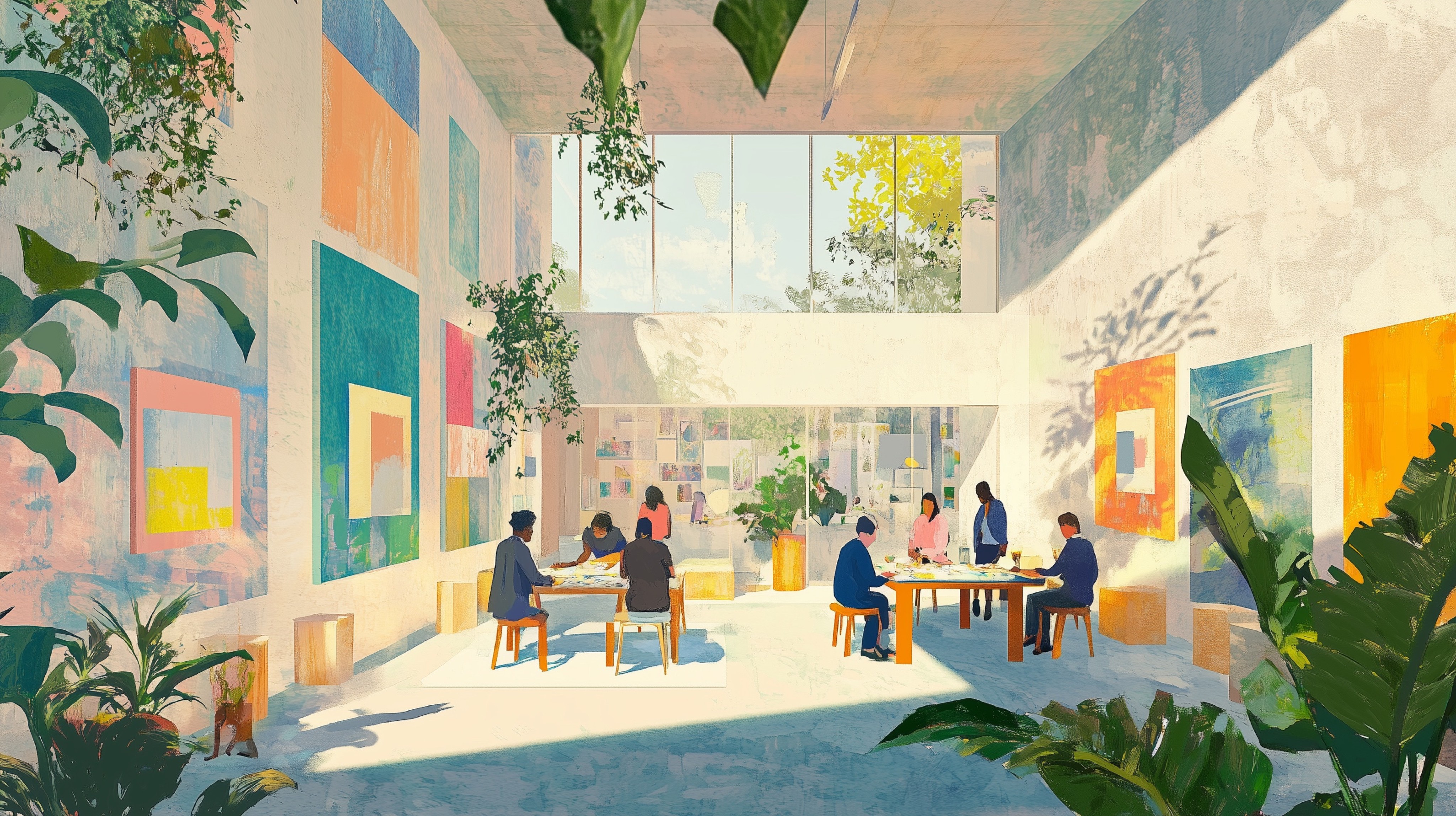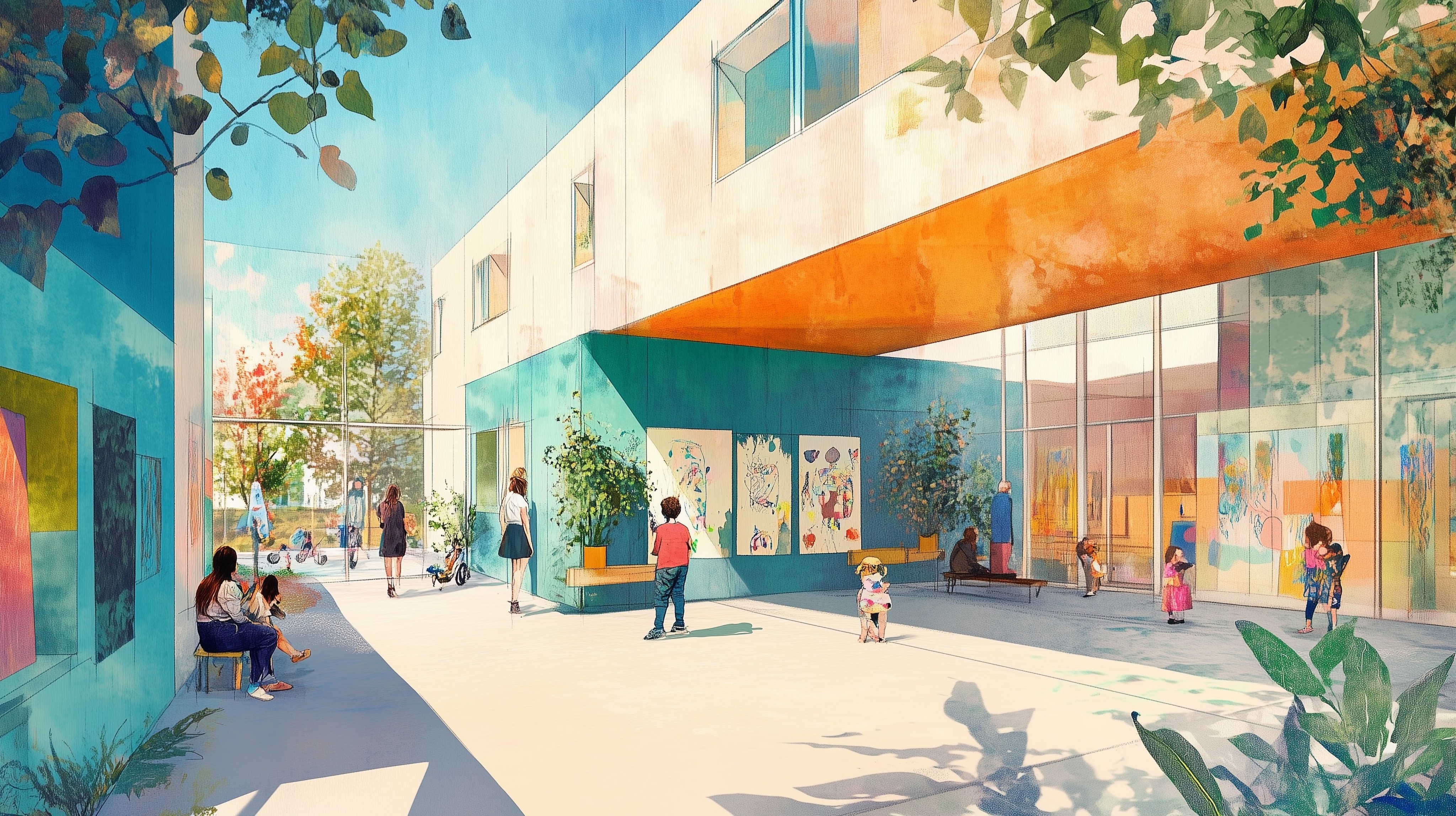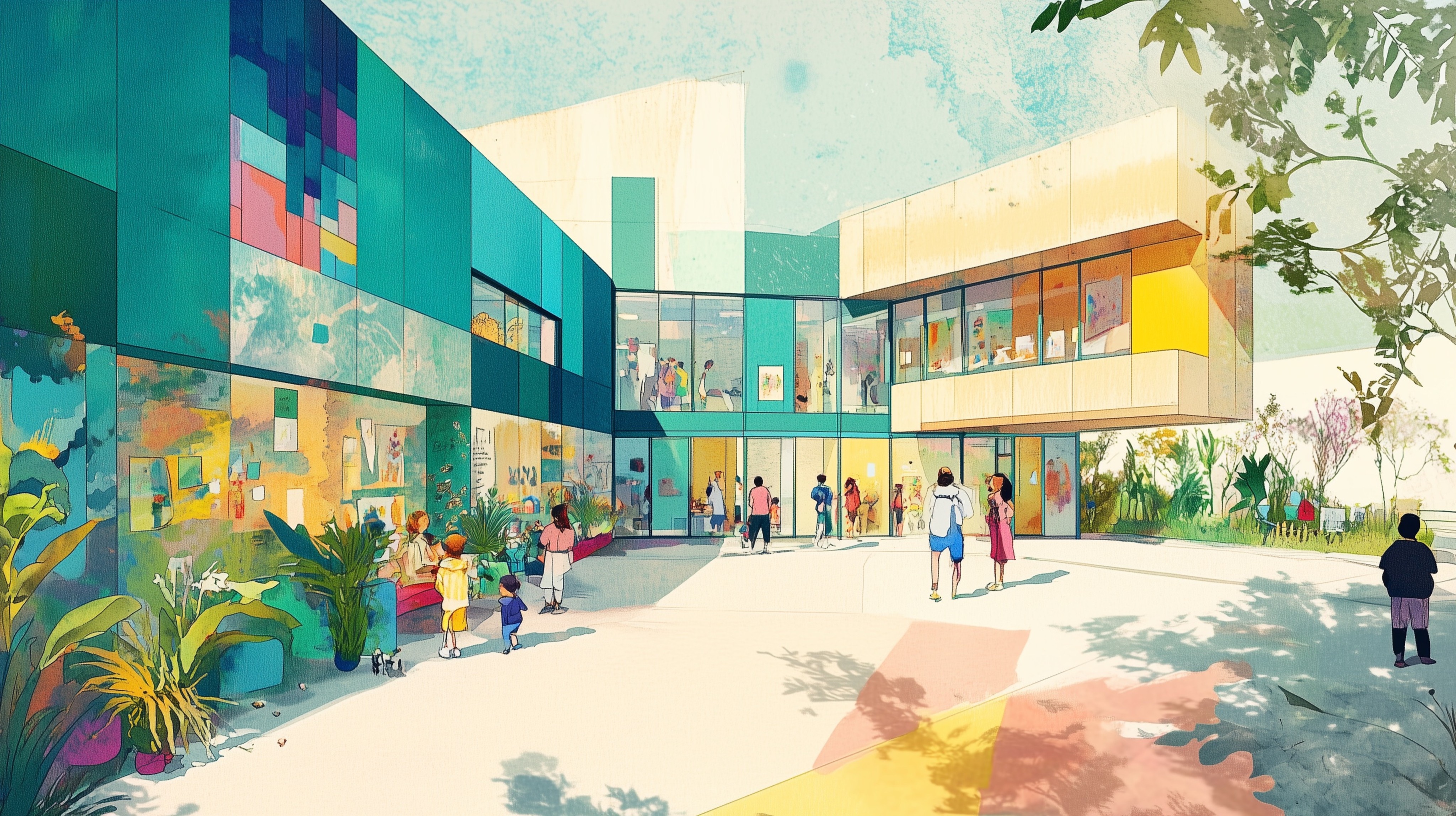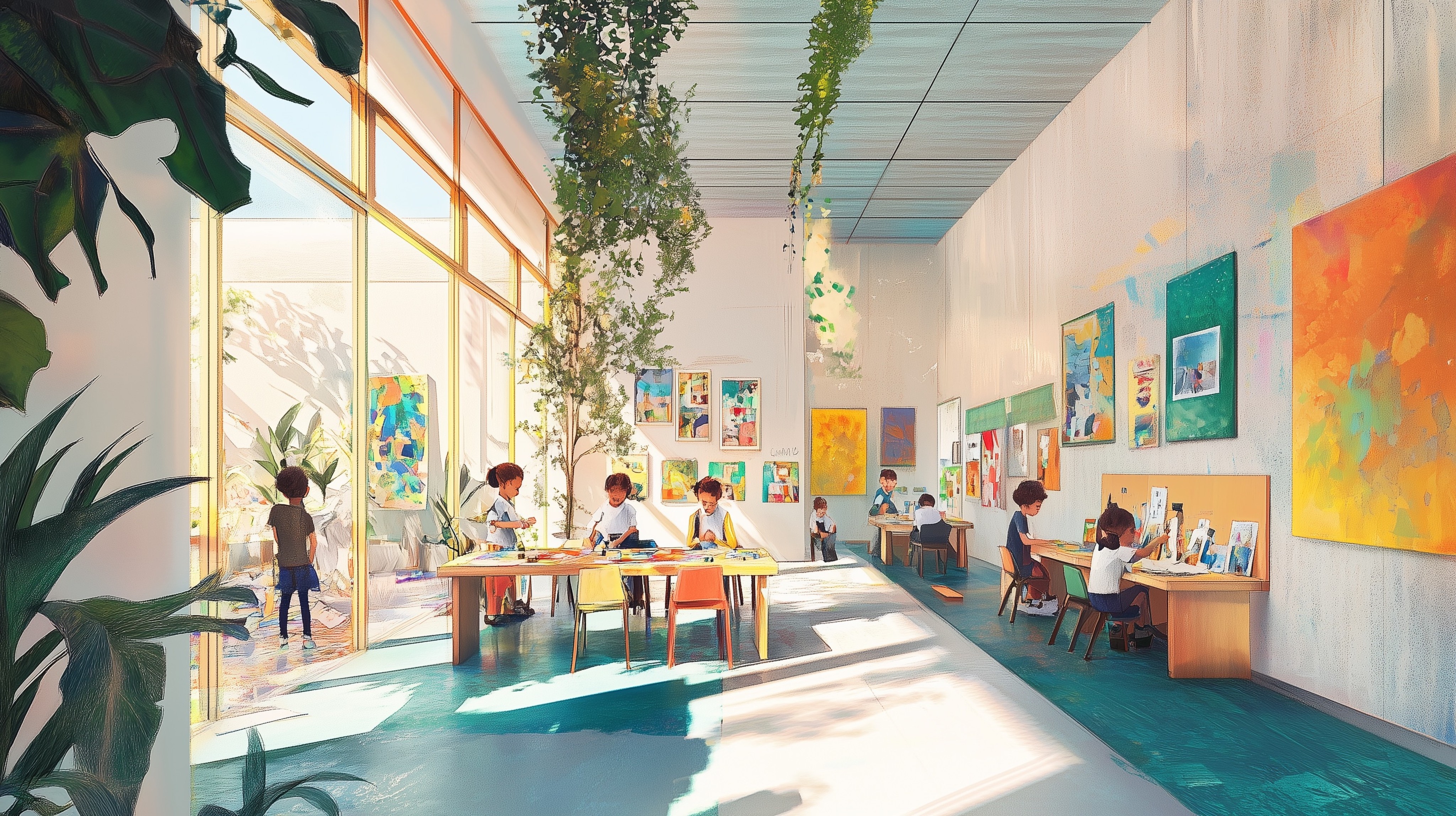 The design of the Art Room focuses solely on sustainable and functional design. The building is crafted from an intriguing blend of materials and textures. Its structure plays with different forms of glass, cement, reclaimed wood, and polished stone, creating an architectural masterpiece that feels both organic and modern. The space inside works like an eco-system, filled with lush greenery and water fountains. With accessibility in mind, the building will predominately be on the ground level, however there are elevators and lifts to the second floor if needed.